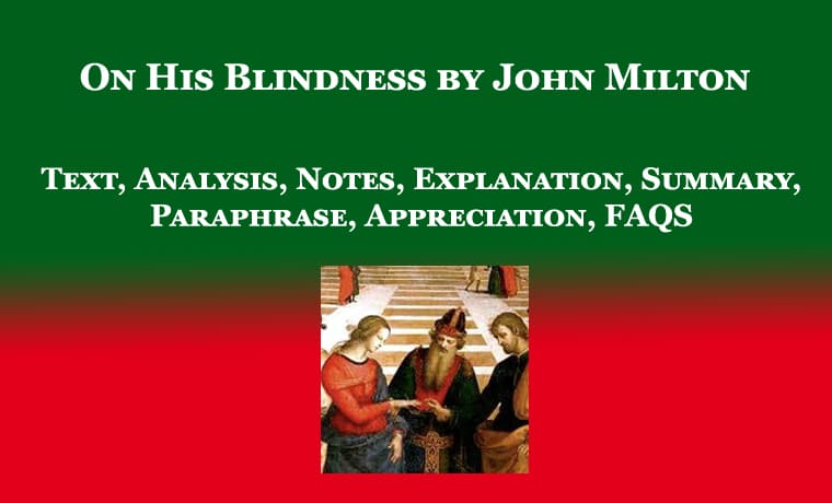 On His Blindness by John Milton: Text, Analysis, Notes, Explanation, Summary, Paraphrase, Appreciation, FAQS