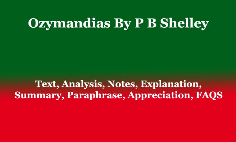 Explore an in-depth analysis of ‘Ozymandias By P B Shelley’ including the text, Analysis, explanation, paraphrase, and summary. Dive into critical appreciation, scholars’ comments, and FAQs to comprehensively understand this classic poem.”