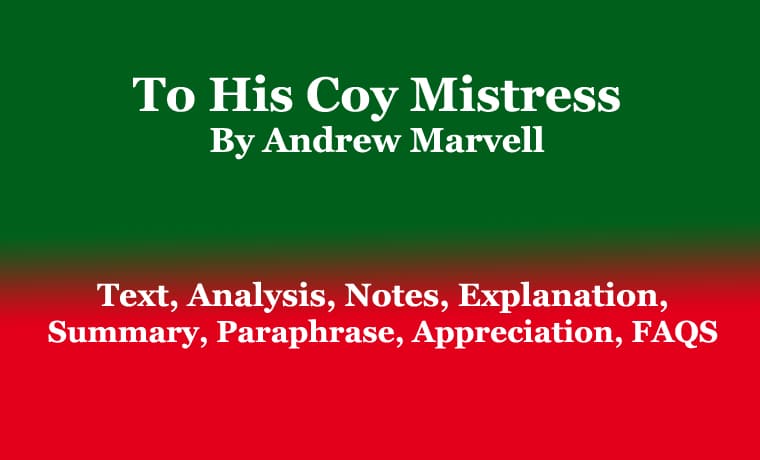 To His Coy Mistress By Andrew Marvell: Text, Analysis, Notes, Explanation, Summary, Paraphrase, Appreciation, FAQS